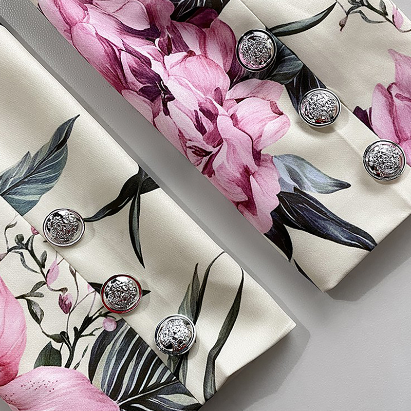 UN RÊVE FLORAL DEVENU RÉALITÉ - De délicates fleurs ornent cet ensemble deux pièces chic, alliant féminité intemporelle et modernité. L'imprimé floral vibrant et raffiné apporte une touche de romantisme à chaque pas.